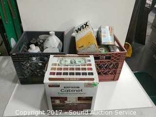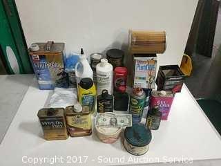 Comes with Rustoleum cabinet dark color paint kit, chrome cleaner, paint thinner, silver clean, gear oil, rain-ex, furniture restore & more.