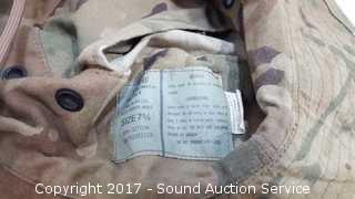 Includes hat and mask. Pants are size large regular, 29.5 to 32.5" inseam. Massif combat shirt size small. Also comes with medium regular desert camo shirt.