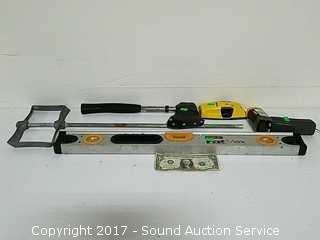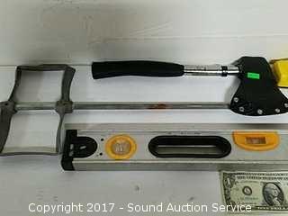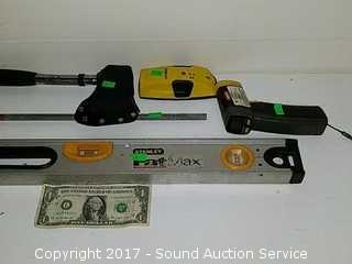 Hatchet, Stanley Fatmax Level, Temperature Gun Infrared Thermometer & Paint Stir