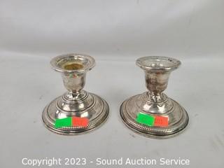 Lot #0092: 2 Pairs of Sterling Weighted Candle Holders