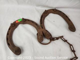 Lot Details: 2 of the horse shoes are welded together. Approx. 4.5" trap.