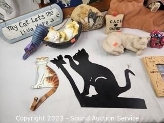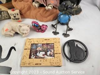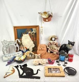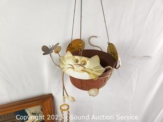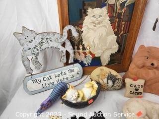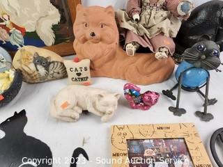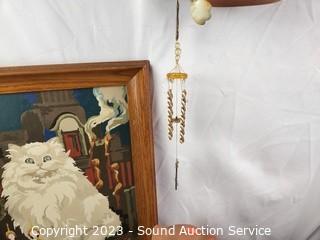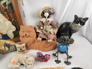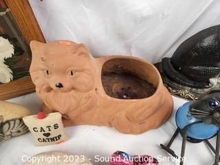 Lot Details: Original oil painting, 15" x 19", terracotta planter pot, cast iron door stop, figures & other decor. Refer to photos for lot contents & more info.