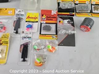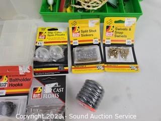 Lot Details: Hooks, bobbers, sinkers, cinches, etc. 5" x 11" x 7" to 1" x 4.5" x 2.75" organizers.