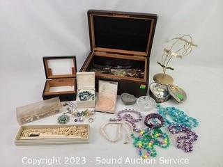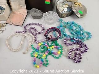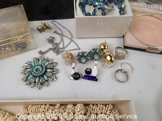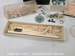 Lot #0181: Assorted Jewelry, Trinket Box & Fashion Jewelry