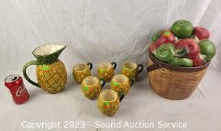 Lot #0129: Baines Pineapple Cups, Pitcher, Sakura Canister