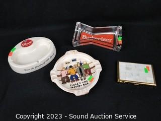 Lot #0078: Beer Advertisement Ash Trays & MOP Cigarette Case