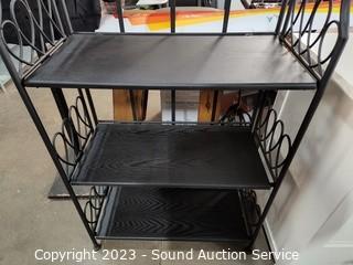 Lot #0050: Black Steel Frame Wood Shelf Folding Shelf Unit