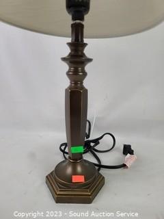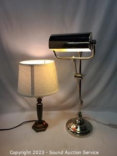 Lot Details: Both work. 24" and 17" tall. Articulating lamp the felt piece on the bottom has come free, needs glued back on.