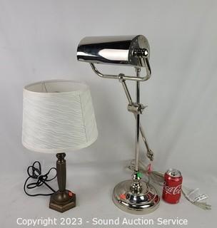 Lot #0083: Chrome Finish Articulating Lamp & Decorative Lamp