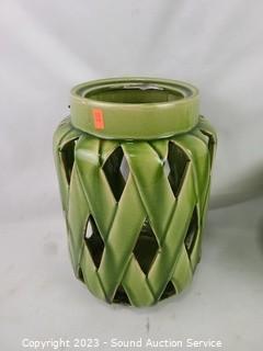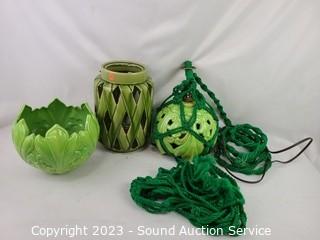 Lot #0118: Hanging Lighted Planter Pot Decor & Lattice Jar