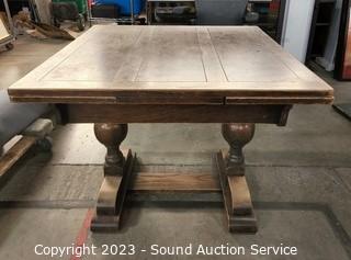 Lot #0046: Vintage Oak Pullout Leaf Table