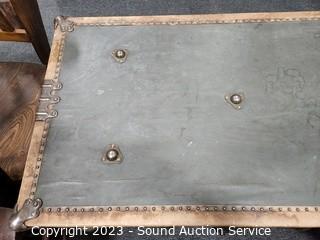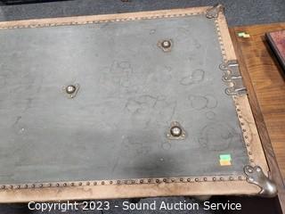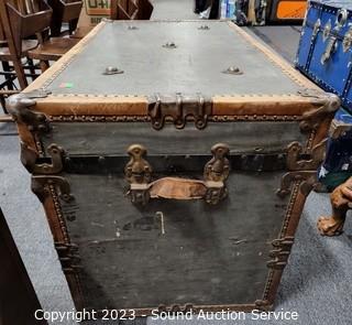 Lot Details: Leather handles are intact, 23.5" H x 34" W x 20" D. Some cracking in finish, various wear to finish.