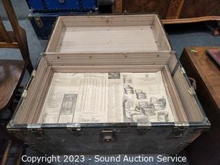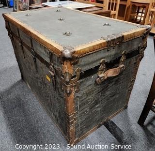 Lot #0026: Antique Wood Steamer Trunk/Chest w/Insert