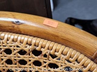 Lot Details: One break in wicker fastener on left facing leg, otherwise in great cosmetic condition. 33" H x 50" W x 17" to seat.