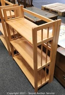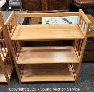 Lot #0023: Folding 3-Tier Wood Shelving Unit