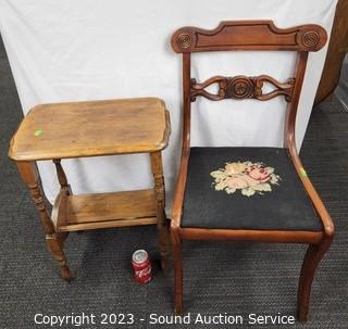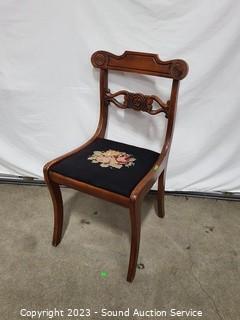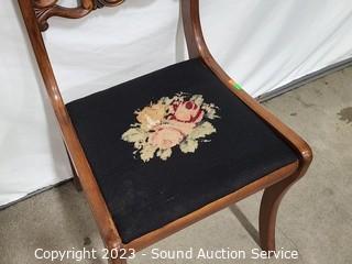 Lot #0012: Vtg. Mahogany Needlepoint Chair & Side Table