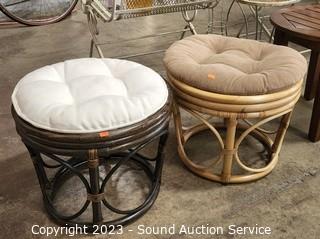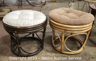 Lot #0033: 2 Bent Bamboo Accent Stools w/Seat Cushions