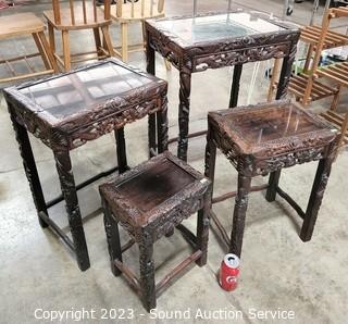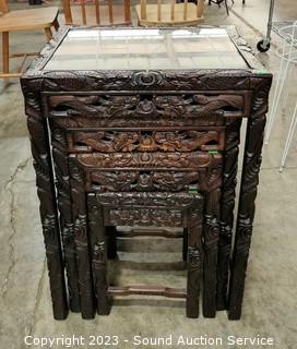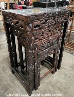 Lot #0042: 4pc Intricately Carved Oriental Nesting Tables