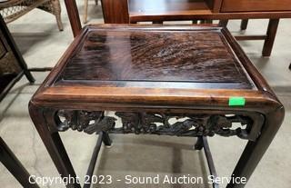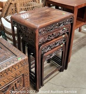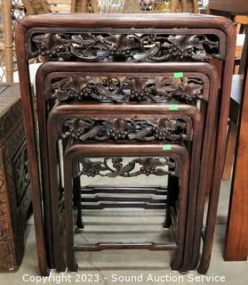 Lot #0004: 4pc Ornately Carved Camphor Wood Nesting Tables
