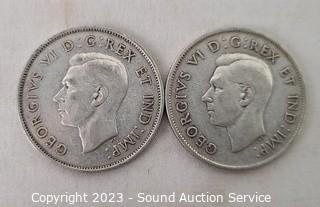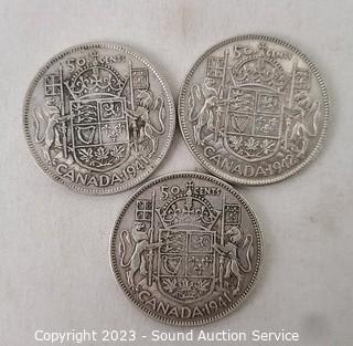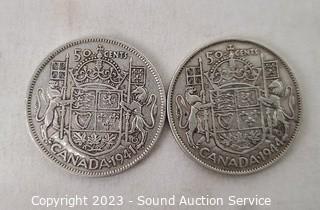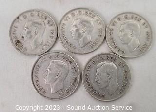 Lot #0277: 5 80% Silver Canadian Half Dollars