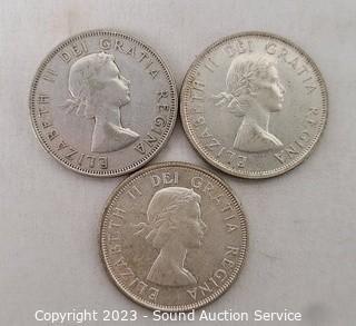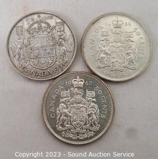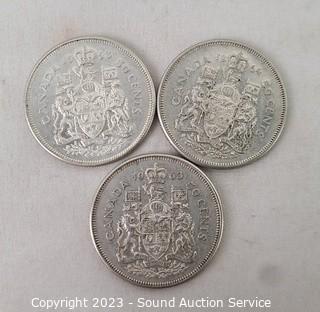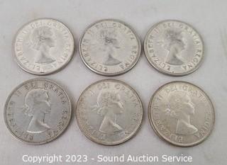 Lot #0278: 6 80% Silver Canadian Half Dollars