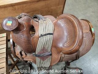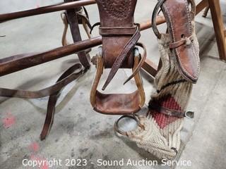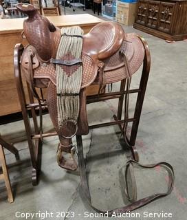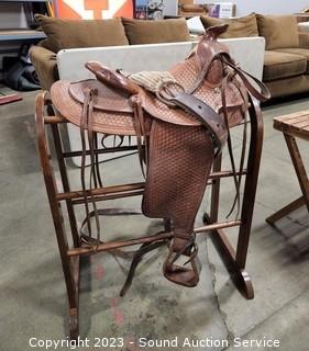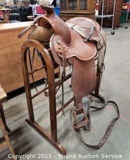 Lot #0009: J.M.Capriola 14" Leather Western Saddle w/Stand #1009