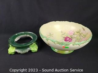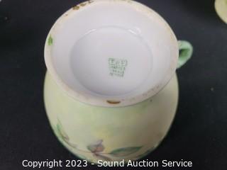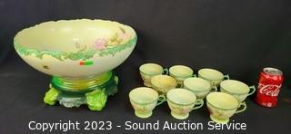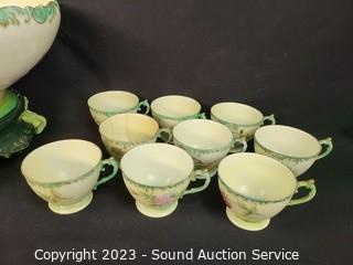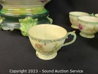 Lot #0156: Limoges Fine China Punch Bowl & 9pc Cups Set