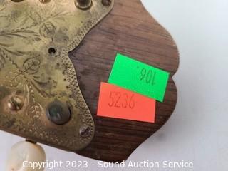 Lot Details: Has a lot of damage. MOP inlaid, Missing strings, face of base is separating, fret face is splitting, some other issues. 24" L x 8" x 5.5".