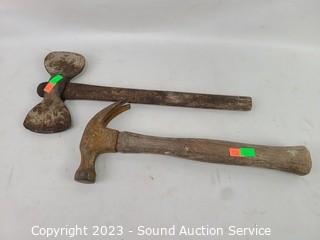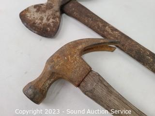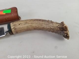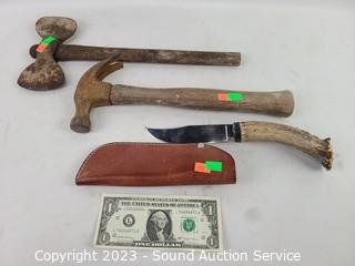 Lot #0181: Olde Hatchet, Hammer & Antler Handle Knife