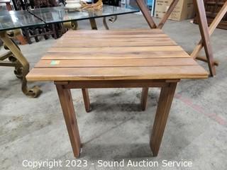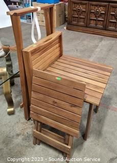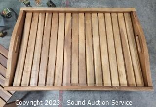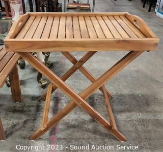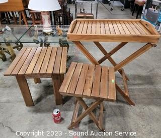 Lot #0023: Pair of Teak Side Tables & Service Tray w/Stand