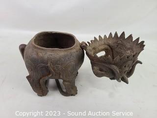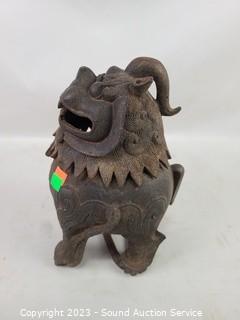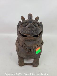 Lot #0117: Vtg. Chinese Cast Iron Foo Dog Incense Burner