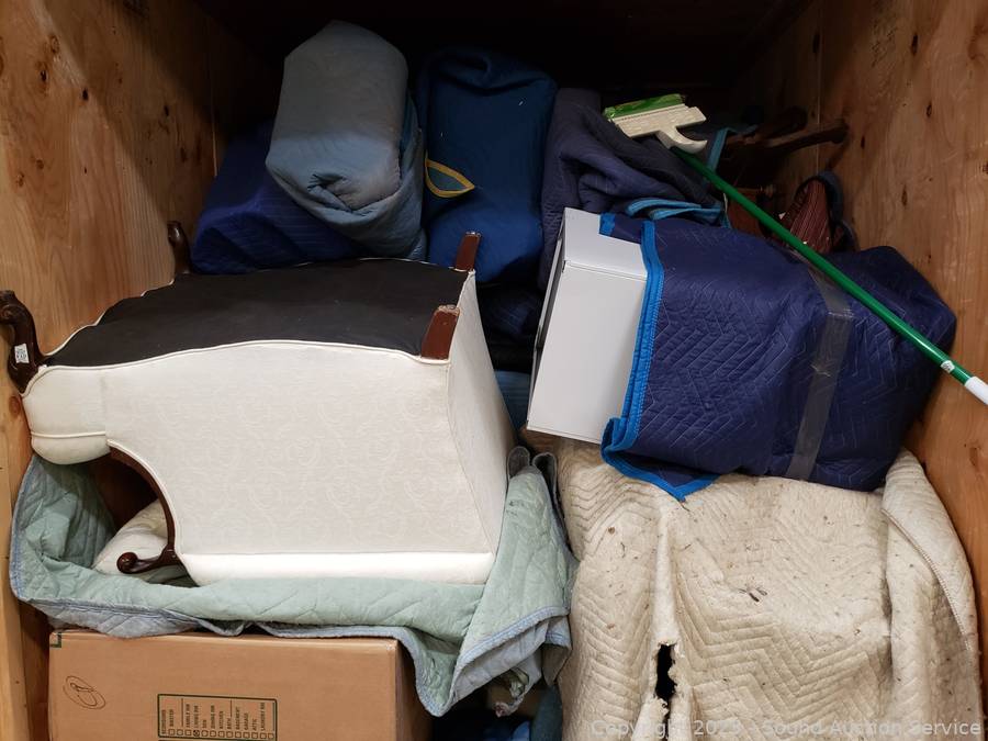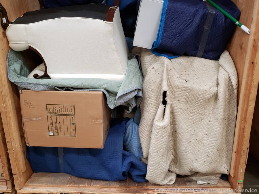 7 Vaults, each vault is approx. 96" H x 72" W x 84" D, 1 is 87" H x 45" W x 85" D. Refer to photos for vault contents, what you see in the photos is what we see, we have not gone through vaults. Preview online only, contents of vaults may not be gone through. Vaults themselves & blankets not included. As is, no refunds. $100, deposit required at the close of the auction upon winning a vault, refunded after complete removal of vault contents.