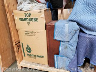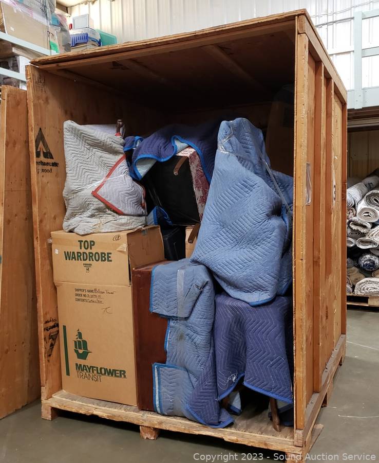 7 Vaults, each vault is approx. 96" H x 72" W x 84" D, 1 is 87" H x 45" W x 85" D. Refer to photos for vault contents, what you see in the photos is what we see, we have not gone through vaults. Preview online only, contents of vaults may not be gone through. Vaults themselves & blankets not included. As is, no refunds. $100, deposit required at the close of the auction upon winning a vault, refunded after complete removal of vault contents.