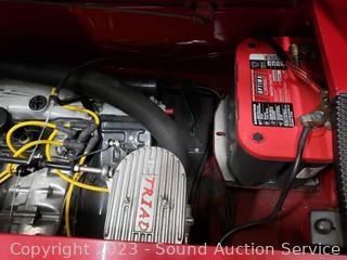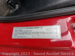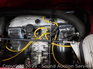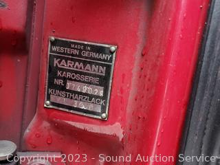 Lot Details: Karmann manufacturer West Germany. Setup with racing suspension, custom exhaust. Belonged to one of the owners of Triad Custom Exhaust, made some racing modifications. Runs & Drives great, really fun to drive! VIN# 4752908817, clean title. 5 Speed Manual Transmission, Dual Carburetor, Traga Flat 4 Cylinder 2.0 Engine, the original 1.8L was replaced for the beefier 2.0L, located mid-rear behind seats. Tiny car, very compact. Odometer reads 21893 miles, not sure if that is right, or on the replacement engine, IDK. Hard top is removable. Left headlight not working, and none of the blinkers are functioning. See one tiny dent on top drivers door, a few scuffs/chips in paint, dash has a couple cracks, see 2 small holes in vinyl seats, a couple scuffs on hard top, some damage to rubber door seals. Overall in great condition, very fun to drive! 156.9" L x 48.4" H x 65" W. The information provided by the family. Refer to video for more information.