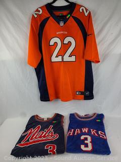 Lot Details: 1948-49 Nats "Iverson" & 1955-56 Hawks "Abdur-Rahlm" Hardwood Classics Jersey's. Nike NFL XXL Broncos #22 Anderson On Field Jersey.