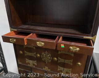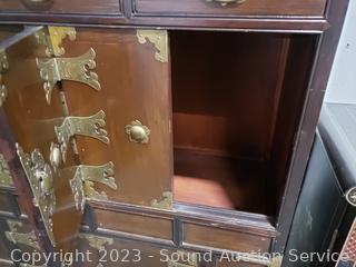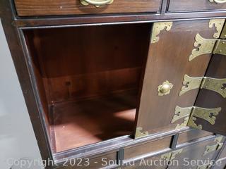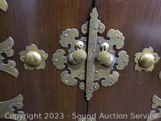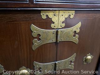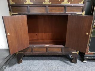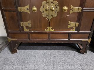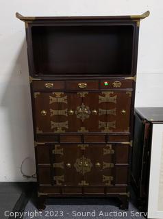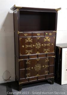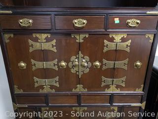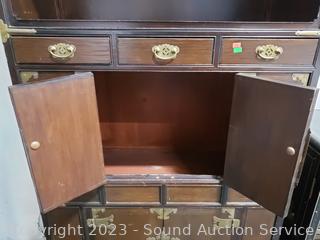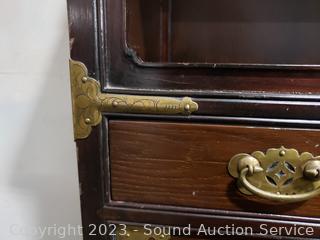 Lot #0012: Dark Cherry Finish Oriental Hutch/Cabinet