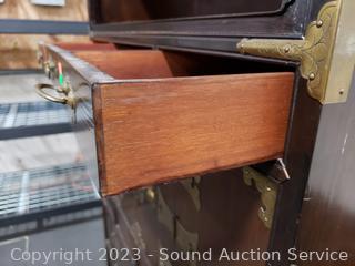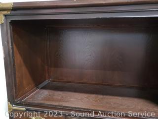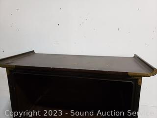 Lot Details: Brass accents, appears to be solid wood construction. Some minor wear, overall great condition. 67" x 37" x 16.5".