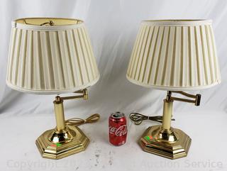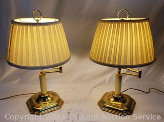 Lot #0009: Pair of Brass Base Articulating Arm Table Lamps