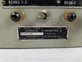 Lot Details: Unable to test, no power supply. Signs of wear from age, use. Console C-559B/FRC-6, Serial NO.75. 110V AC.