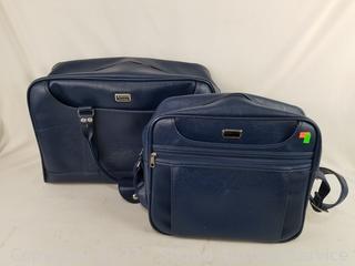 Lot #0185: 2pc Samsonite Blue Leather Travel Bags