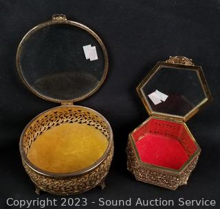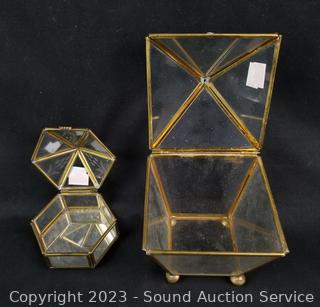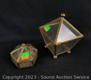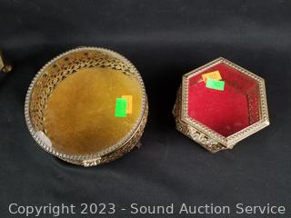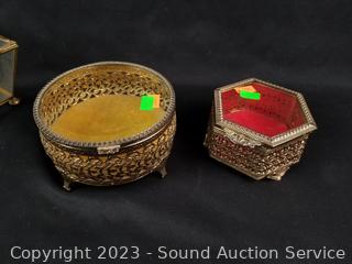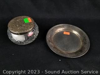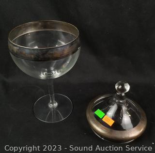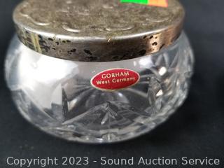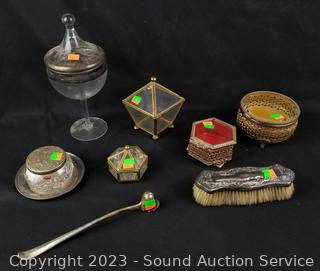 Lot Details: Trinket boxes, Gorham crystal dish, candle snuffer, brush, compote.
