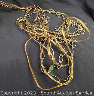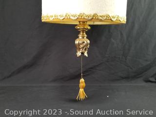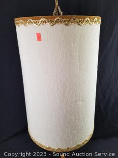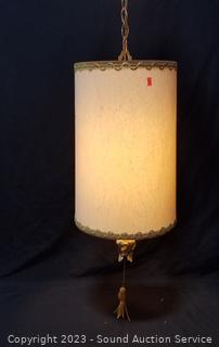 Lot Details: Chain approx. 180" long, cord 200", 18" x 11" lamp. May take an extra pull on power switch to turn off/on, shade has some creasing, dings.