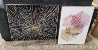 Lot Details: 28" x 28" metal art decor, 20" x 27.5" abstract artwork.