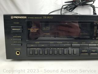 Lot Details: Receiver & speakers work. Receiver comes with antenna, model SX-1900. Speaker Speakers 14.5" x 10" x 7.5".