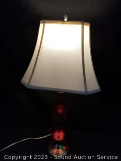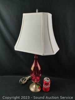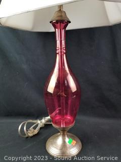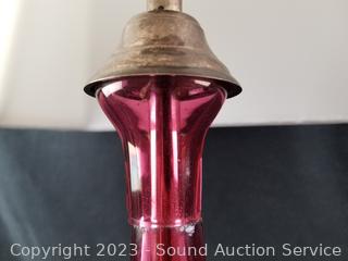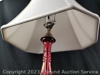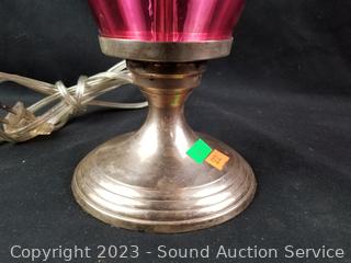 Lot #0017: Silver Plate Base Pink Glass 28" Table Lamp