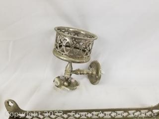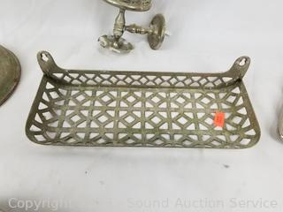 Lot Details: Various wear, dirty from age, use. Toothbrush rack, 3 mirrors, powder box with mirror, shelf.