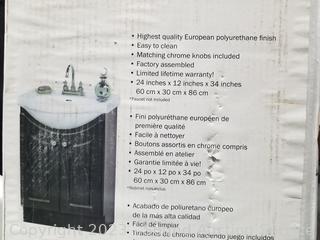 Lot Details: Vanity base with porcelain top. 34" H x 24" W x 12" D. Doesn't appear to have ever been install. Does not come with faucet hardware, otherwise appears complete. Comes with original box.