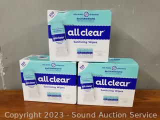 Lot #0035r: (3) 320ct All Clear Sanitizing Household Wipes