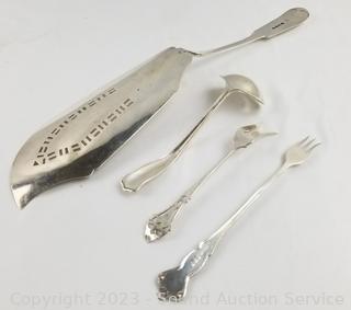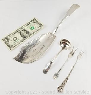 Lot #0158: Antique English Sterling Cake Server & Silverware