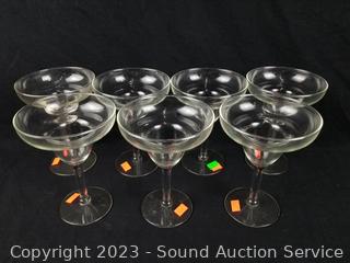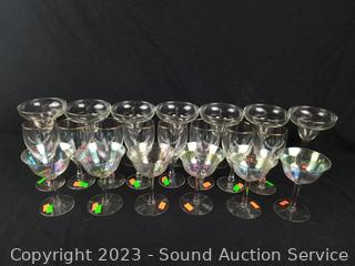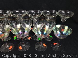 Lot Details: Iridescent pieces have small chips on edge, rim, Irish coffee & margarita glasses.